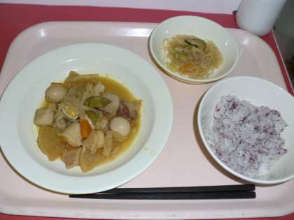 ゆかりごはん 牛乳 豚肉と大根のうま煮 春雨サラダ