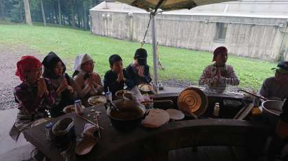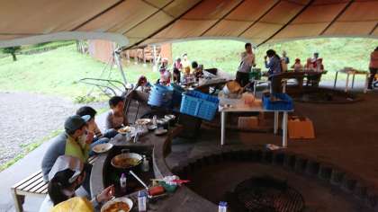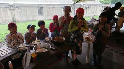 みんなで力を合わせて作ったカレーライスは、抜群です。美味しい!量もたっぷり大盛です。