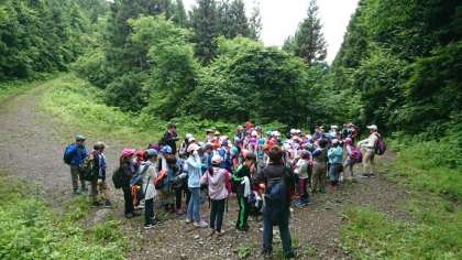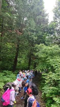 ようやく登山道入口です。すでに弱音も聞こえ始めました。がんばれ。