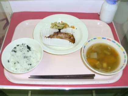 わかめごはん 牛乳 鶏肉のごまみそ焼き