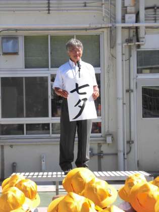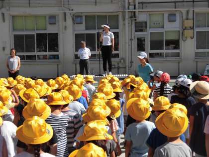 看護当番の先生から、自分で体調管理をしましょう、とお話がありました。帽子、ハンカチを持ってくることで、熱中症や病気の防止につながります。きちんと持ち物は持って来ましょう。