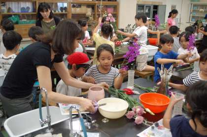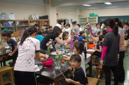 今月は、「トルコギキョウ」「ドラセナ」「ベロニカ「ルリタマアザミ」「モカラ」を使っています。ワンコインクラブの皆様、ありがとうございました。
