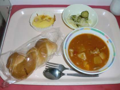 ミルクパン 牛乳 トマトシチュー オニオンサラダ