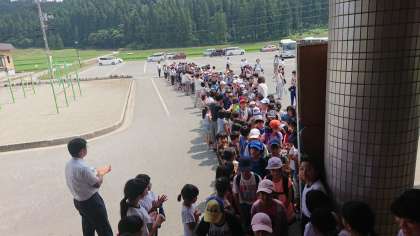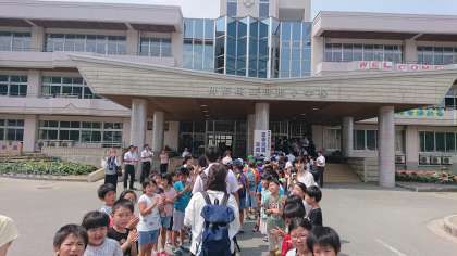 学校をあげてのお迎えです。感動の瞬間です。