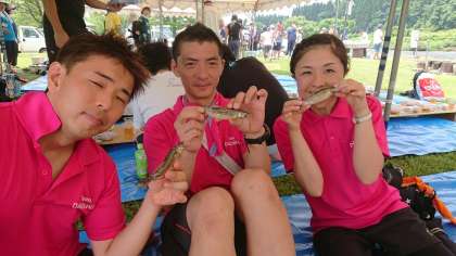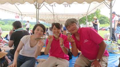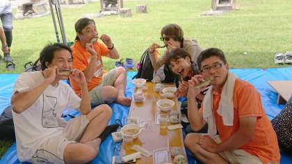 引率の保護者の皆さん、お疲れ様です。みんな美味しい笑顔。