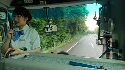 バスは日光市に入りました。ガイドさんの説明を聞いています。