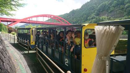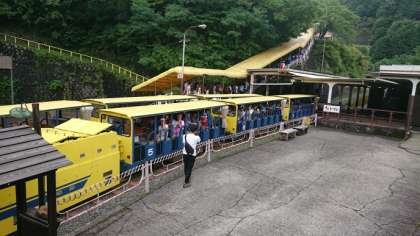 トロッコに乗って、銅山内へ。さあ、どうなっているかな。