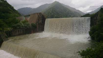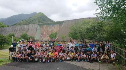 精練工場の跡地を左にみて、銅親水公園に。雨がポツポツですが、学年集合写真を撮りました。