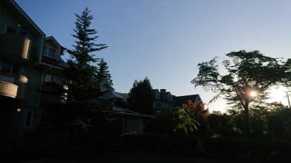 昨夜は激しい雨が降りました。でも、朝は晴れ渡っています。さあ、2日目の始まりです。