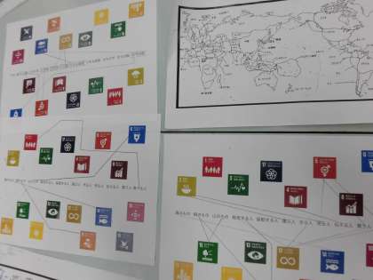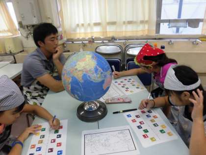 食べ物を通して日本と世界がどのようにつながっているかをチョコレートジェラードを例にお話いただきました。3種類のジェラードとトッピングを自分で選んでパフェを作りました。