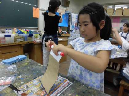 和紙を使った世界で一つだけの巻物を楽しく作ることができました。