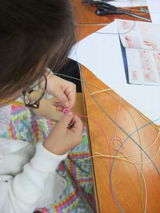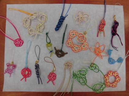 水引で、あわび結びを使って、ストラップ作りをしました。色鮮やかな素敵な作品がたくさん出来上がりました。