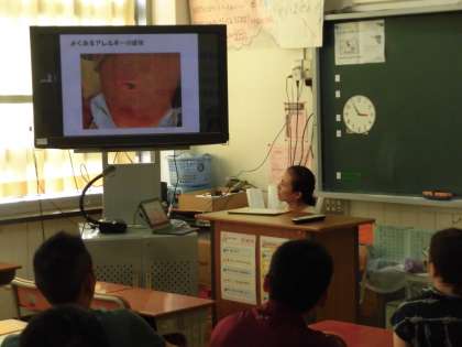 教職員に向けて、養護教諭によるアレルギー対応研修が行われました。