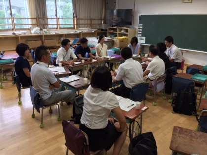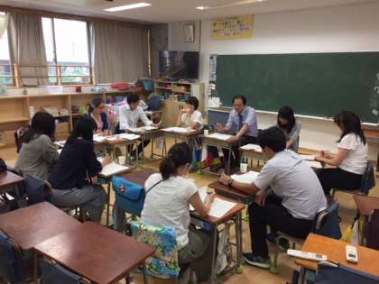 多聞小学校の研究授業を、多聞小・代沢小・池之上小・富士中の教員で参観し、「学び舎の児童・生徒の豊かな知力育成のための重点」を確認しながら意見交換を行う交流会が行われました。