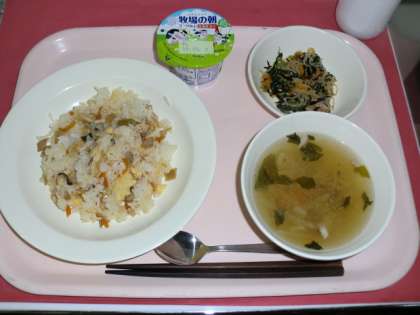 五目寿司 牛乳 小松菜サラダ 沢煮碗 ヨーグルト