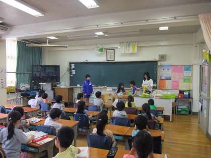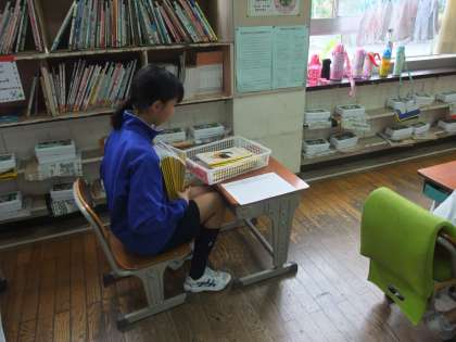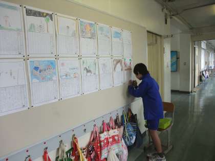 クラスに入って先生の手伝いをしたり、主事さんの仕事の手伝いをして職場を体験します。非常に意欲的に活動しています。