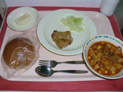 照り焼きチキンバーガー 牛乳 チリコンカン