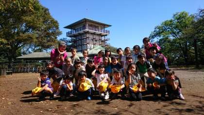 枡形山では、遊具で遊んだり、集合写真を撮ったり、展望台に登ったりしています。