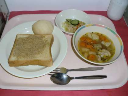 セサミトースト 牛乳 ポトフ ツナサラダ くだもの