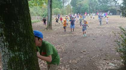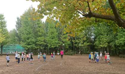 せせらぎ班ごとの遊びが始まりました。だるまさんがころんだや、鬼ごっこ、ボール遊びのところもあります。