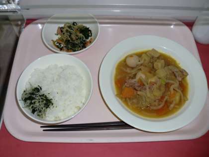 ごはん 牛乳 ふりかけ 肉じゃがうま煮