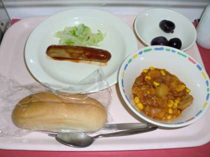 *ホットドッグは、コッぺパンにゆでたキャベツと