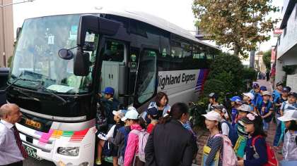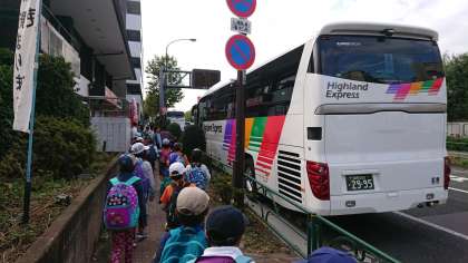 今日は3年生が社会科見学です。世田谷区内めぐりです。さあ、出発。