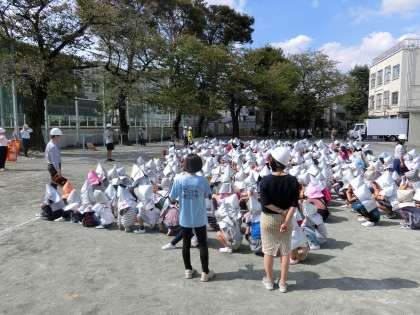 地震を想定した避難訓練が行われました。学校公開期間で参観されていた保護者の方にも参加いただきました。ご協力ありがとうございました。