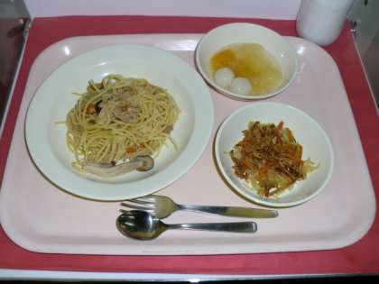 きのこスパゲッティ 牛乳 パリパリごぼうサラダ