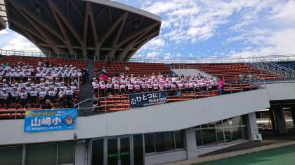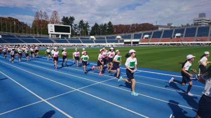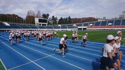 駒沢オリンピック記念公園総合グランドで、6年の連合運動会が開催されてます。代沢は、最終日Dグループです。