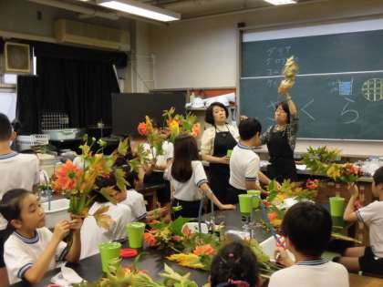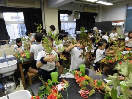 10月25日(木)「花を生ける」体験がありました。日ごろからお世話になっているワンコインクラブの方々に花の生け方を教えていただきました。ご用意いただいた素敵な花とポットを使い、子どもたち一人一人が作品を仕上げました。みんな、うれしそうに花をだいて下校しました。花のお世話を通して、たくさんのことを感じ取ってほしいと思っています。