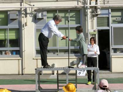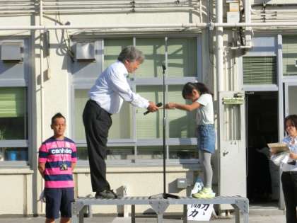 表彰の様子です。立派な態度で、校長先生から受け取っていました。