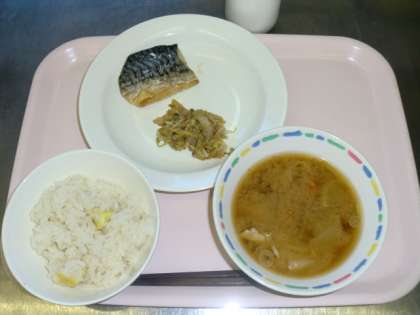 栗ごはん 牛乳 さばの塩焼き 豚汁