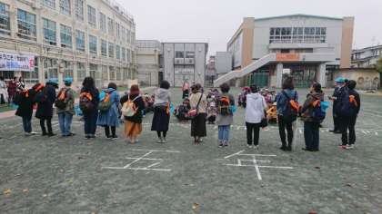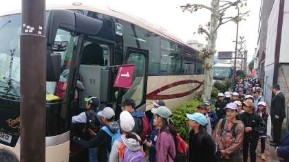 出発式が終わり、いよいよ出発です。引率の保護者の皆さんの紹介があり、バスに乗り込みました。
