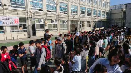 舟形交流 校庭にて