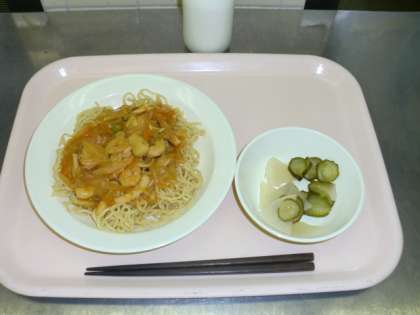 *えびを辛い味つけで炒めた中華料理のえびチリソースを