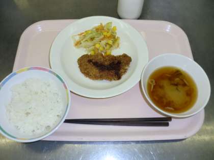 ごはん 牛乳 豚ヒレカツ みそ汁 コーンサラダ