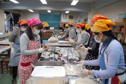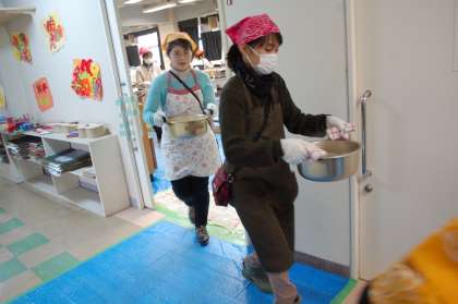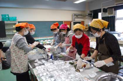 裏方でも、PTAの皆さんが大活躍です。「おいしい!」という声ににっこりされていました。