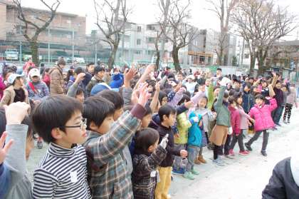 PTA会長の「おいしかった人?」に、「は〜い」と手を挙げて応える子どもたち。笑顔いっぱいの閉会式でした。