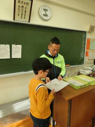 2学期の成績が担任から手渡されます。6年生は、1学期から成長があったか、苦手なことをできるようになったか、得意なことはもっと得意になったか、2学期当初に立てためあてに向かって努力できたか、達成できたかなど、様々な観点から2学期を先生と振り返っていました。また、「〜をがんばっていたね」「〜ができるようになったね」口頭でも様々な子どものがんばりを伝えます。