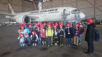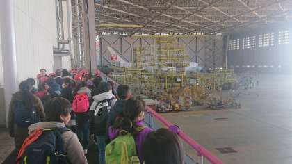 目の前に巨大な飛行機があり、びっくりです。たくさん質問して、大変勉強になりました。