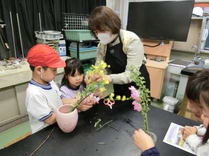 今月は「オンシジウム」「コデマリ」「ラナンキュラス」「スイートピー」を使っています。ワンコインクラブの皆様、ありがとうございました。