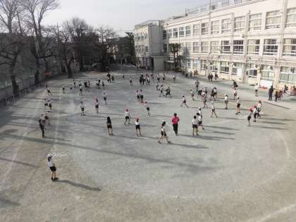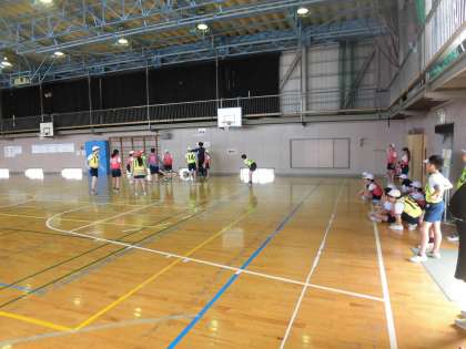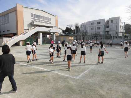 5年生が企画・運営をする送別球技大会が行われました。校庭ではドッチボール、体育館ではバスケットボールを5・6年混合チームで行いました。暖かい日でもあり、汗びっしょりになるほど夢中になり、楽しそうに過ごしていました。