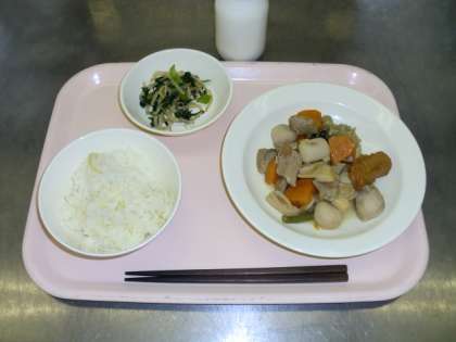 ごはん 牛乳 ポテトコロッケ みそ汁 からし和え