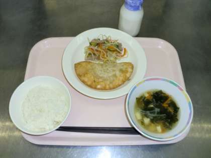 ごはん 牛乳 ジャンボ餃子 わかめスープ