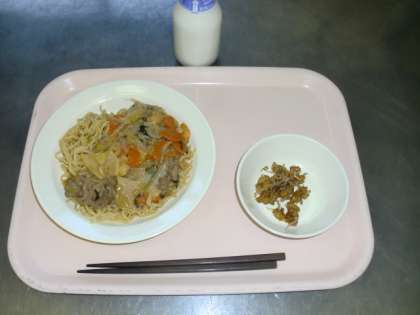 五目あんかけ焼きそば 牛乳 大豆とじゃこの甘辛揚げ