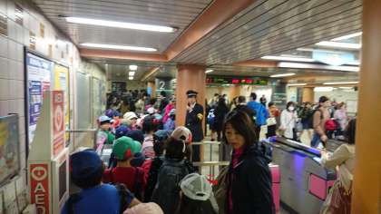 田園都市線に乗りました。みんな、お行儀よくしています。