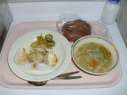 ココアパン 牛乳 白身魚のマヨネーズ焼き