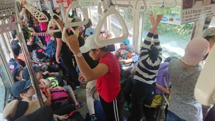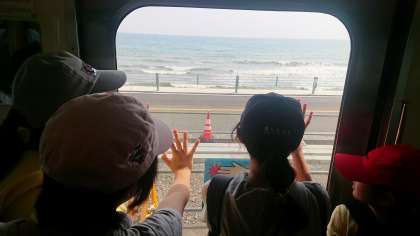 江ノ電から、湘南の海が見えました。サーファーが見えました。