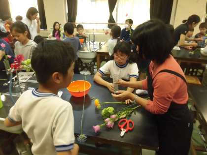 今月は、「カンパニュラ」「アリウム」「ガーベラ」「ビバーナム」を使っています。ワンコインクラブの皆様、ありがとうございました。